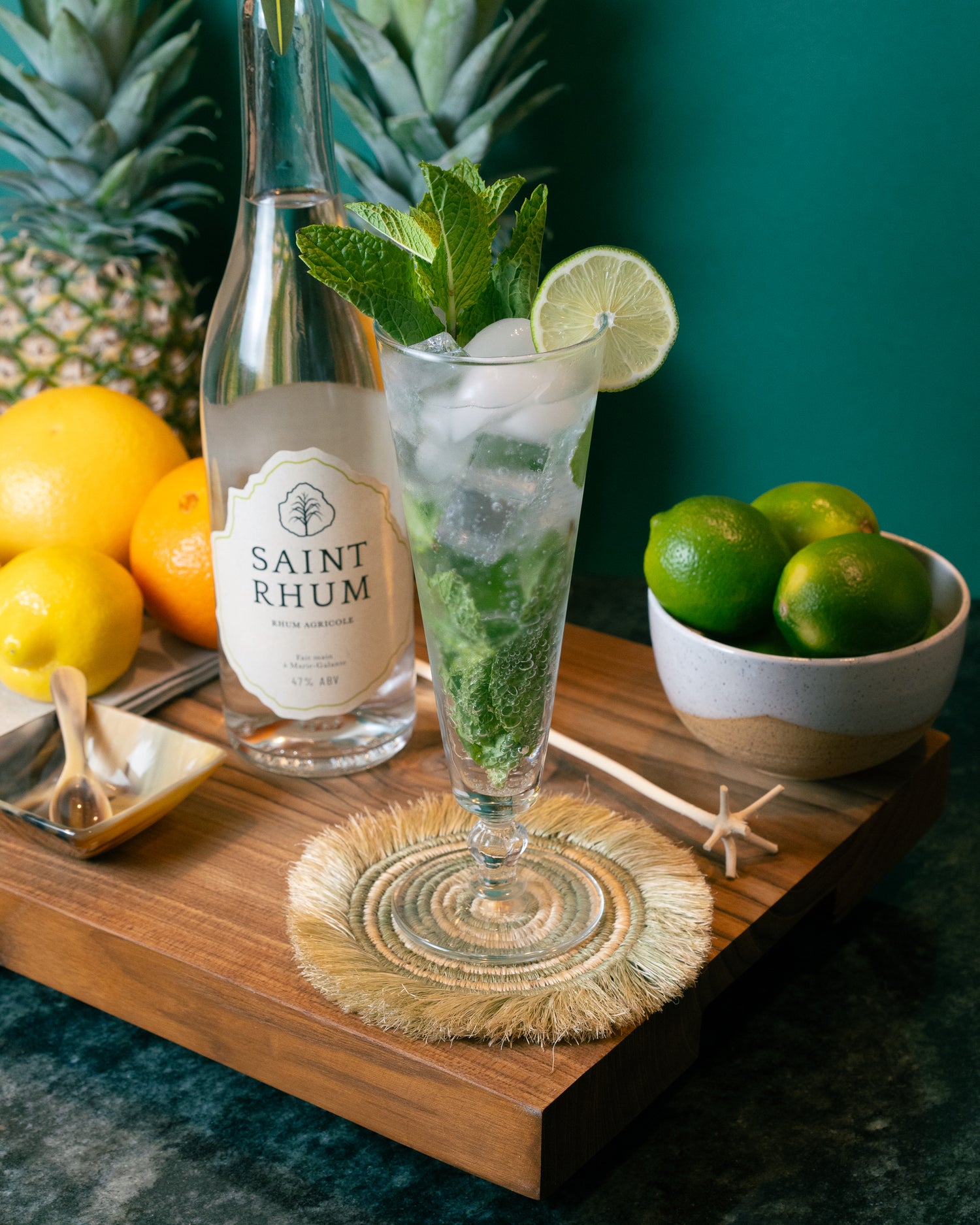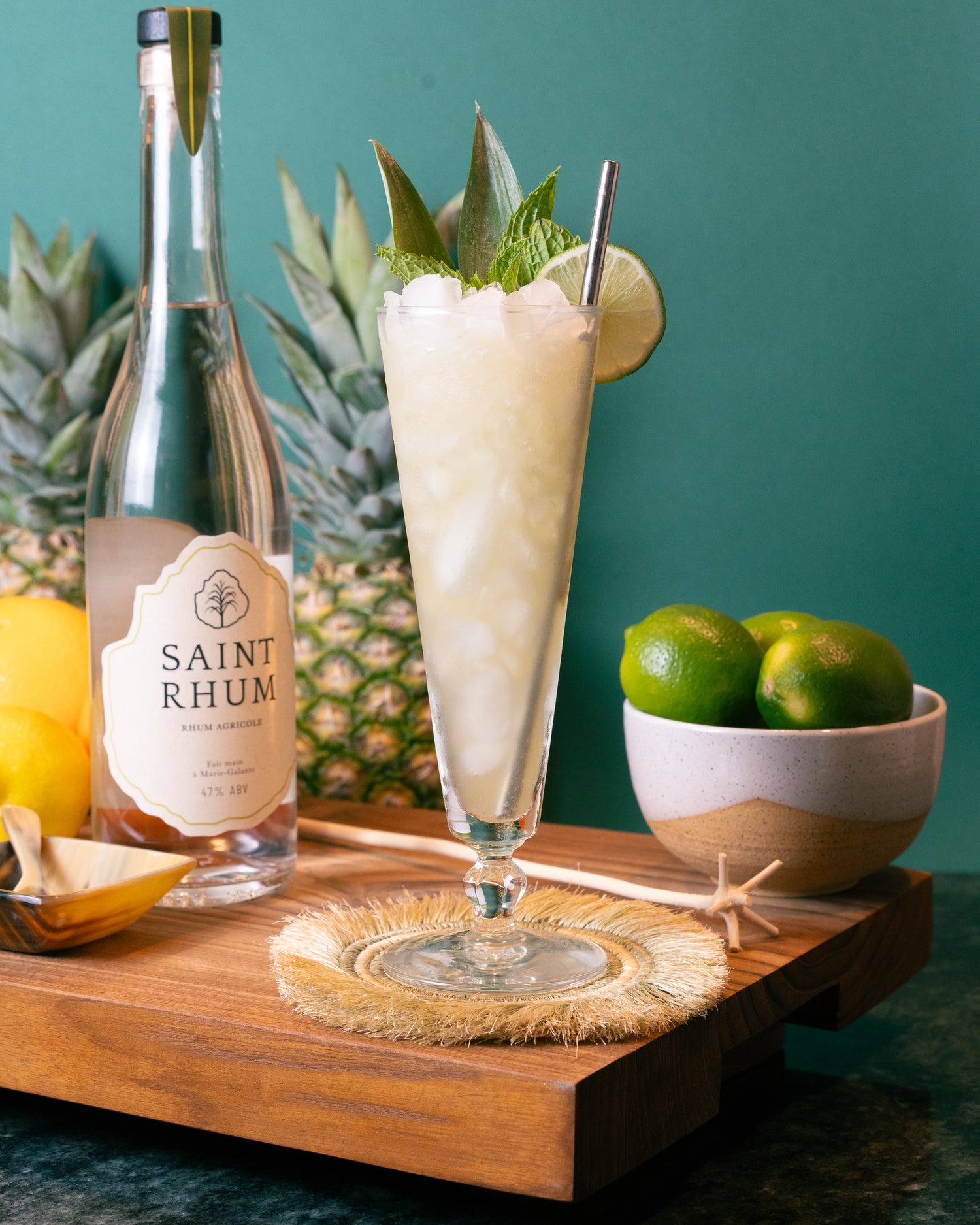 Intimidated by complex cocktail recipes? Just mix Saint Rhum, lime juice, and soda for an easy, refreshing drink.